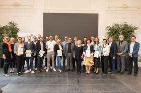 Im Anschluss überreichte Herr Thorsten Jarz-Sand, Leiter des Instituts für Sekundarstufe Berufsbildung, die Abschlusszeugnisse. Auch Frau Claudia Taylor und Herr Niklas Lichtenegger vom Schulqualitätsmanagement der Bildungsdirektion Steiermark sowie Herr Alois Tieber, Studienleiter des Erweiterungsstudiums für Polytechnische Schulen, sprachen ihre herzlichen Glückwünsche aus.