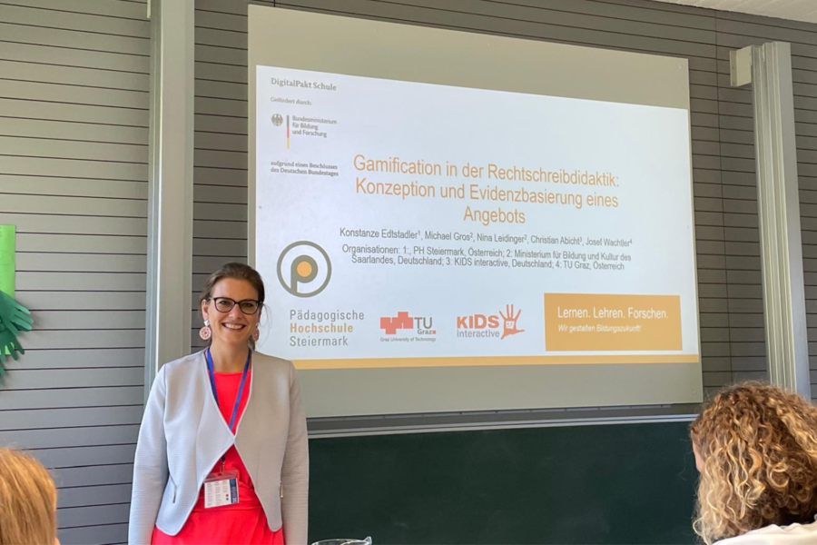 Dr.in Monika Gigerl, BEd MA, Hochschulprofessorin für sozialwissenschaftlichen Sachunterricht und Menschenrechtsbildung, präsentierte den Einzelbeitrag „Sicher - für alle! Kinderschutzkonzepte in Österreich“. Mag.a Dr.in Konstanze Edtstadler, Hochschulprofessorin für Angewandte Sprachwissenschaft und Deutschdidaktik, leitete die Einzelbeitragsschiene „Digitale Lernangebote“, in der sie selbst den Beitrag „Gamification in der Rechtschreibdidaktik: Konzeption und Evidenzbasierung eines Angebots“ vorstellte.