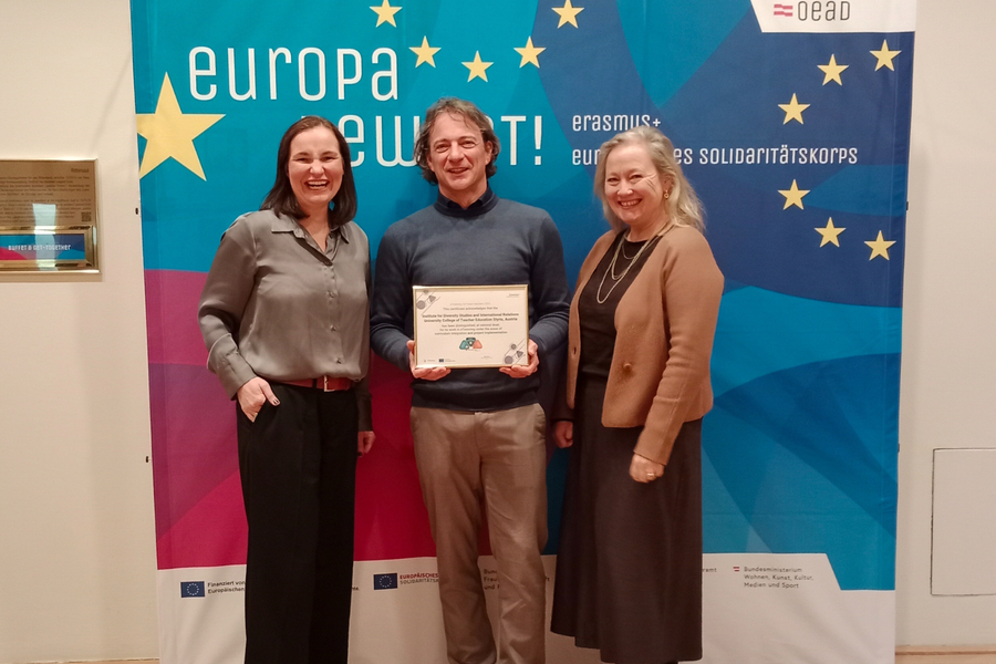 Die feierliche Preisverleihung fand am Dienstag, 9. Dezember 2025, im Palais Niederösterreich in Wien statt. Die Auszeichnung wurde von Ursula Panuschka, Bereichsleiterin Erasmus+ Schulbildung, OeAD, und Martina Schmidt, Erasmus+ Schulbildung, OeAD, an Heiko Haas-Vogl vom Institut für Diversität und Internationales an der Pädagogischen Hochschule Steiermark überreicht.
