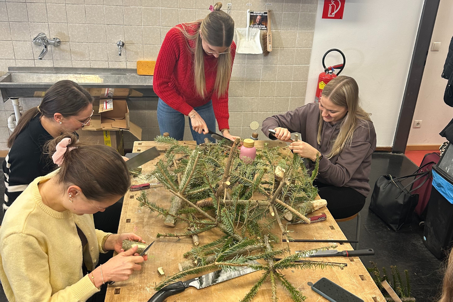20. Jänner 2026 – Im Rahmen des Schwerpunkts Natur und Technik setzten sich die Studierenden des 5. Semesters in einer Lehrveranstaltung mit Nora Luschin-Ebengreuth und Veronika Ruhry kreativ und praktisch mit Nachhaltigkeit auseinander. Ausgangsmaterial waren die ausgedienten Weihnachtsbäume, die nach den Feiertagen am Hasnerplatz in großen Mengen gesammelt wurden.